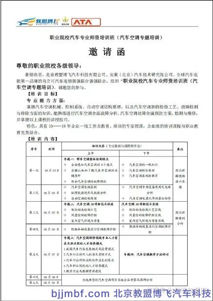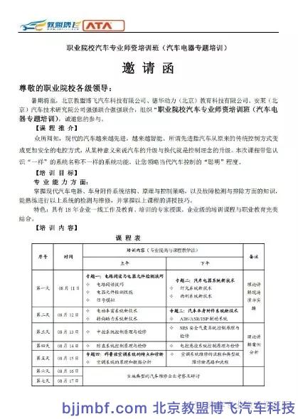 暑期将至,北京教盟博飞汽车科技有限公司、安莱(北京)汽车技术研究院公司联合,组织“职业院校汽车专业师资培训班,诚邀您的参与