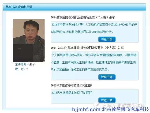 中国汽车专业师资培训平台包含:师资培训课程、案例课程、专家直播培训、培训资料等四方面师资培训资源。师资培训课程包含近600课时视频课程及课件(实时更新增加中);案例课程包含1292个视频案例,近3000个文本案例;专家直播培训包含不少于10期/年的实时培训;培训资料涵盖近种车型的原厂资料和电路图等等。