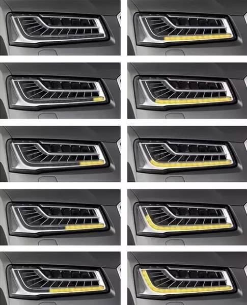 奥迪A8L上装备的矩阵式LED大灯能够实现单个LED灯光的动态管理,它可根据传感器反馈的数据自动调整LED矩阵中的光源,避免灯光直射车辆和行人。