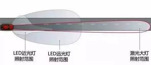 和LED相比,激光大灯所占体积更小,能耗更低,但是产生的光线强度比LED强很多,激光灯源拥有近乎LED远光灯两倍的照射距离,照射范围大大增加。