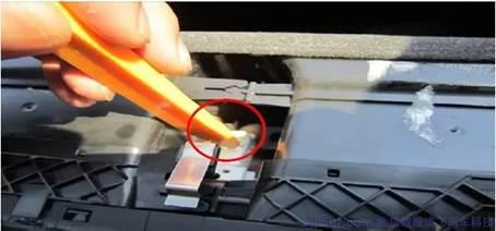 5.注意:将组合仪表出风口拆下后,检查出风口卡子是否有掉的(卡子很容易掉),如果掉了,一定要找到,否则掉在车里车辆在行使中会产生噪音,出风口共有九个卡子(图下所示)