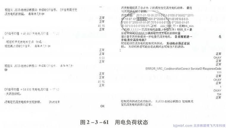 读取蓄电池历史记录,发现对应的“0-0 -0-1-0”同样显示发电机存在电器故障,如图2-3-61所示。