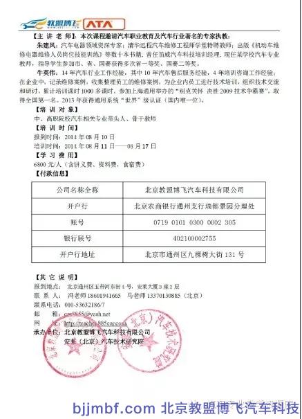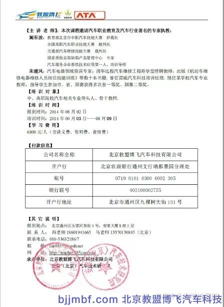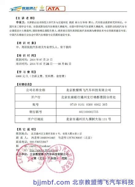 暑期将至,北京教盟博飞汽车科技有限公司、安莱(北京)汽车技术研究院公司联合,组织“职业院校汽车专业师资培训班,诚邀您的参与