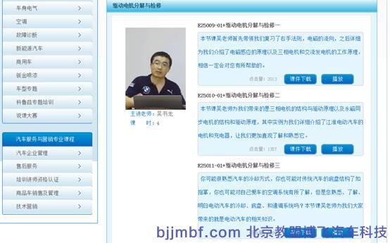 汽车专业师资培训平台建设内容有:师资培训课程包含近1000课时视频课程及课件;企业案例包含1000个视频案例,近3000个文本案例;网络直播培训包含不少于10期/年的实时培训;师资培训资料涵盖3000多种车型的原厂资料和电路图,并且实时数据升级和更新。